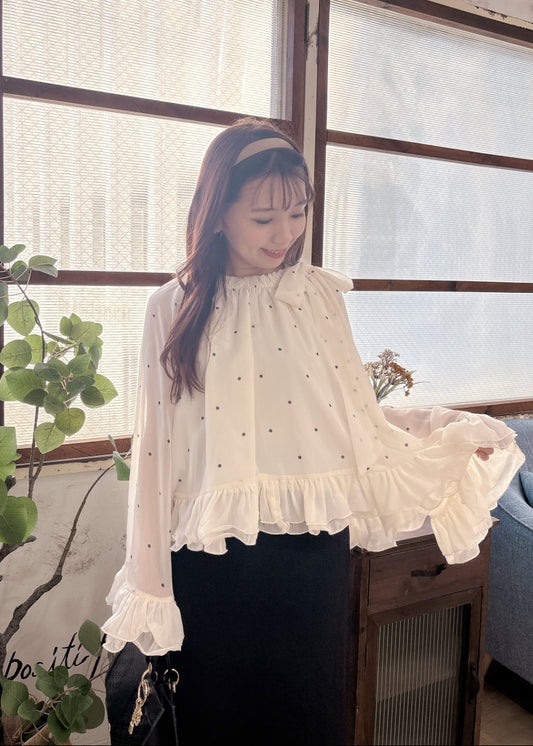 売り切れドット柄シフォンブラウス