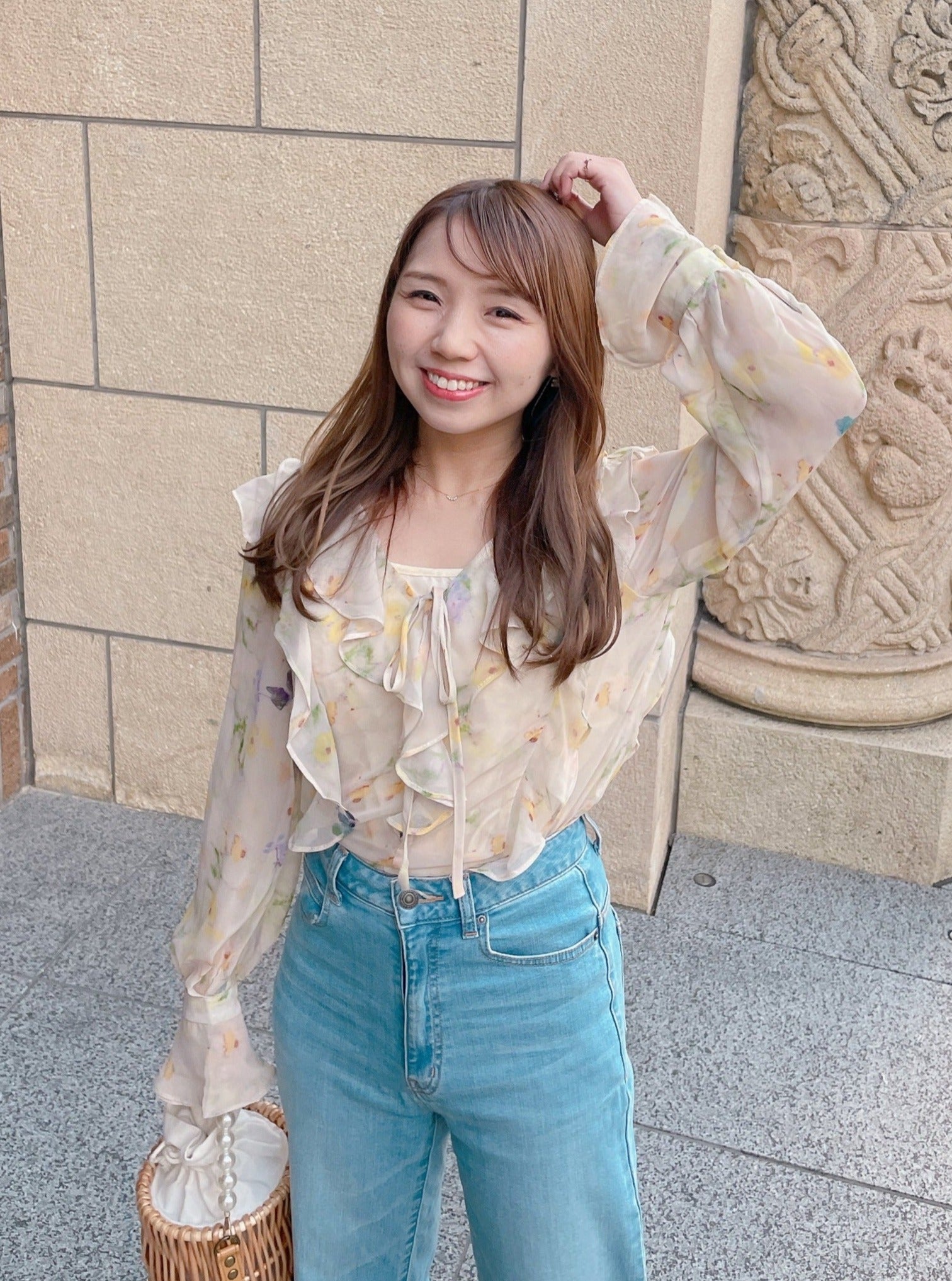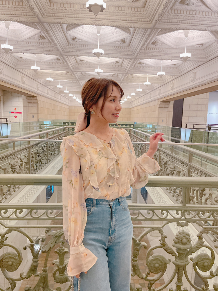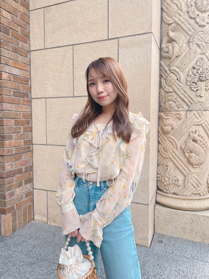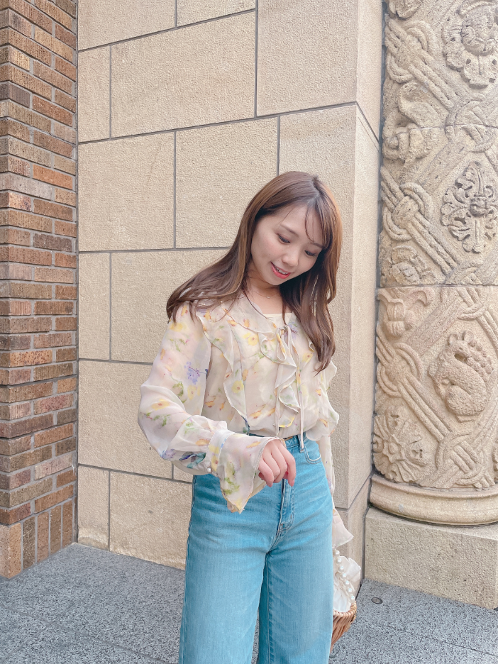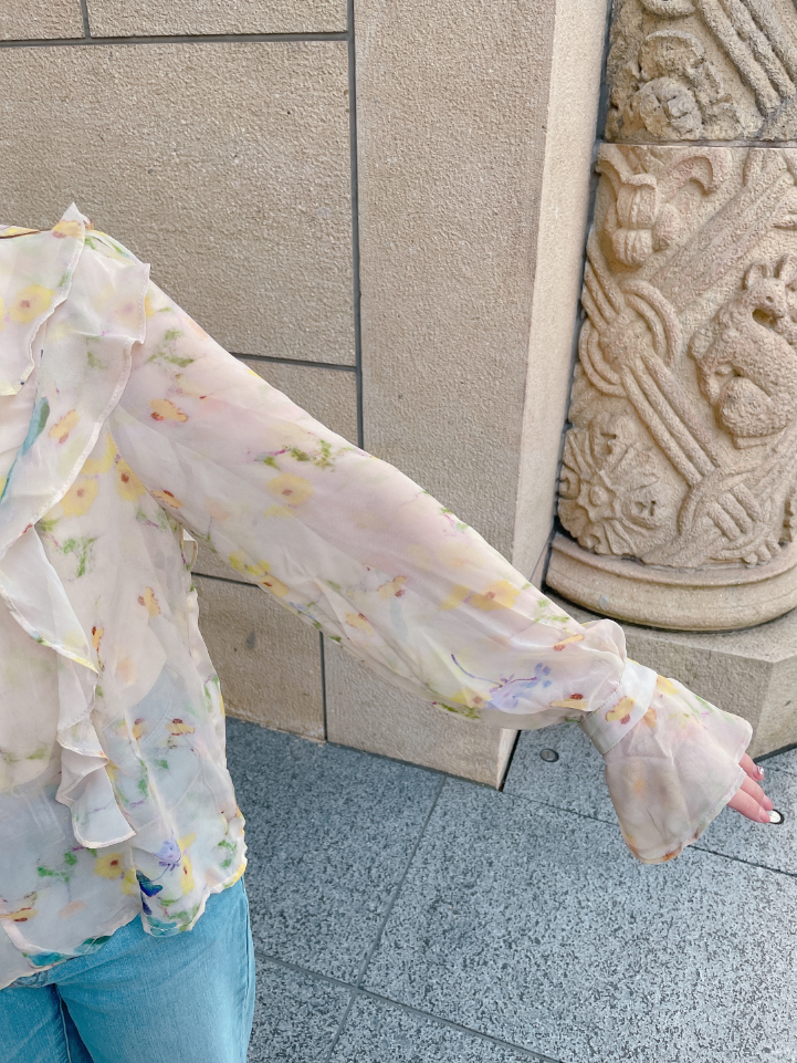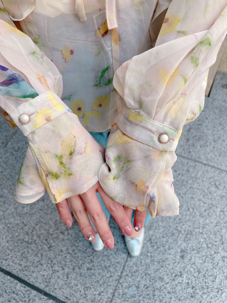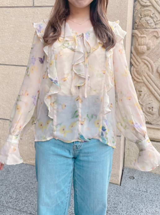 春にぴったりの柔らか素材の花柄シフォンブラウス♡通常のものより密度が高く、軽やかな上質シフォン素材を使用しているので、着心地も見た目も◎です。