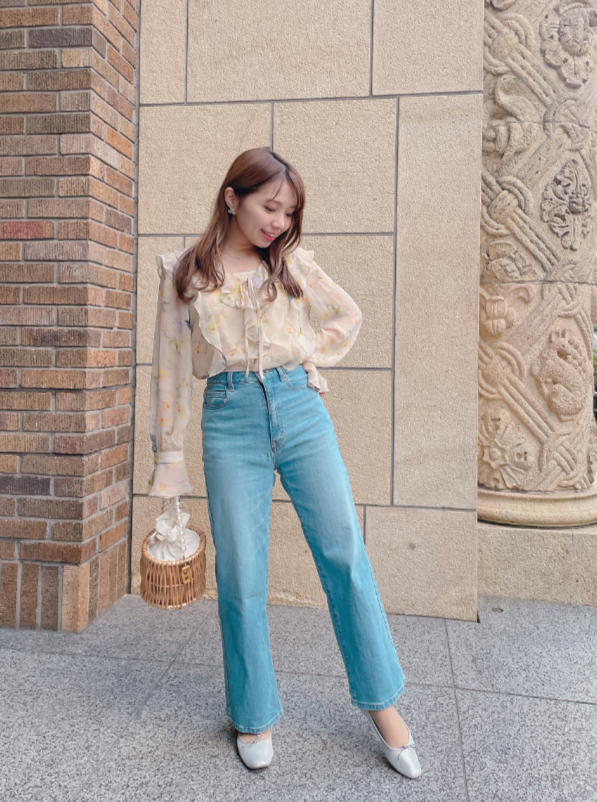 春らしいアネモネの花柄♡ぼかし花柄なので、子供っぽくならず洗練されたイメージになります。カラーも派手過ぎず、肌なじみのいいクリームイエローカラー。マーメイドスカートやきれいめテーパードはもちろん、あえてデニムでカジュアルダウンして頂くコーデもおすすめです。
