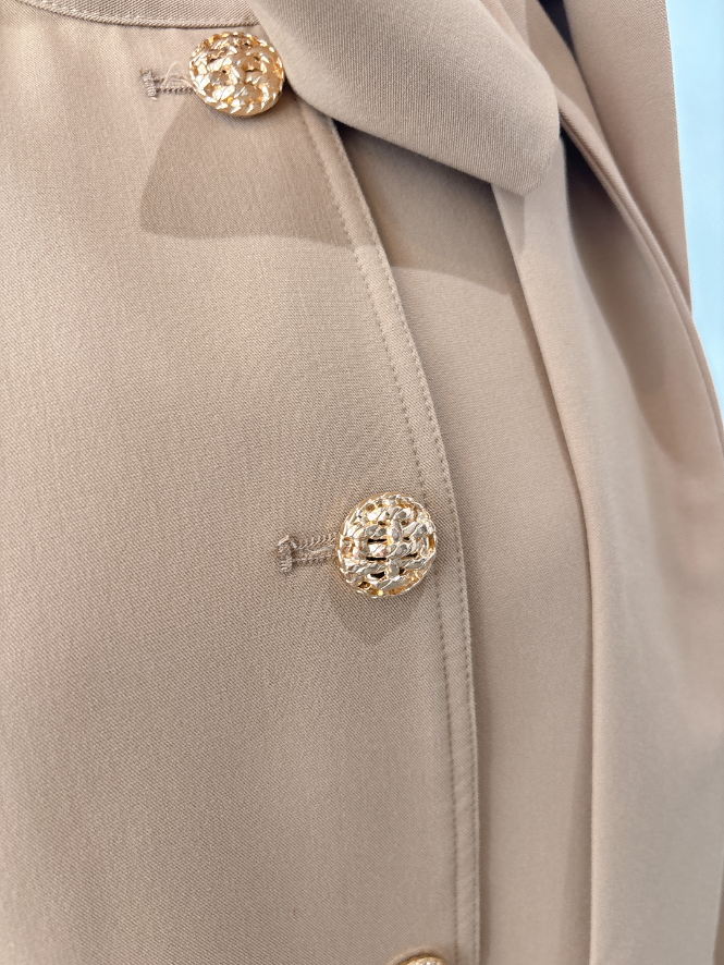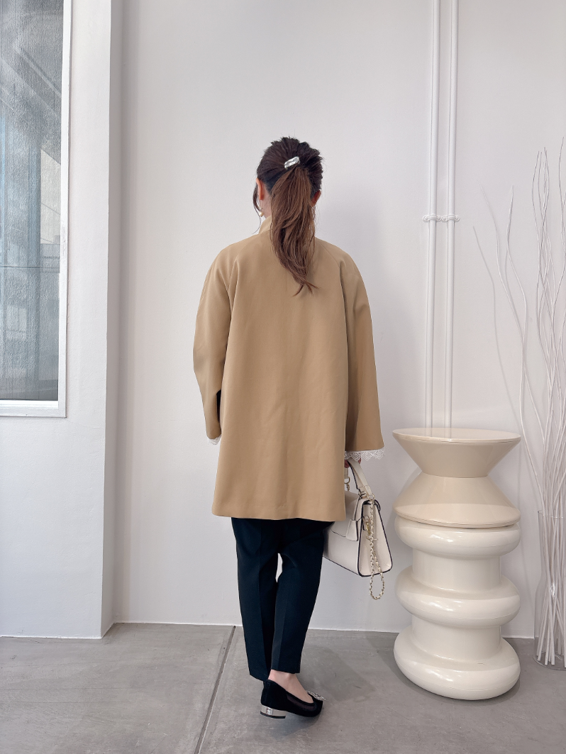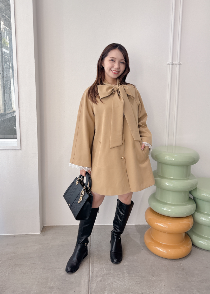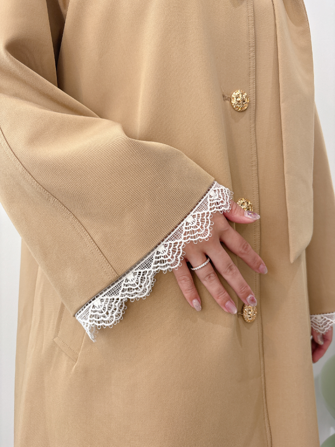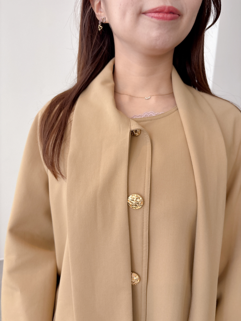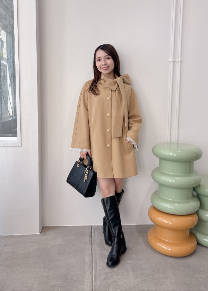ミニボトムスに合わせるとトレンチワンピのように着れてsweetに♡テーパードパンツやタイトロングスカートに合わせると大人っぽく。合わせるアイテムによってがらっと印象が変わるので、かわいいものが好きな大人女性にこそぜひ選んで頂きたいなと思うアイテムとなりました。着やすいベージュカラーなのでお仕事にも〇