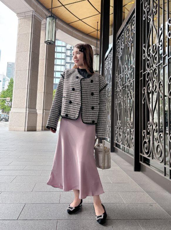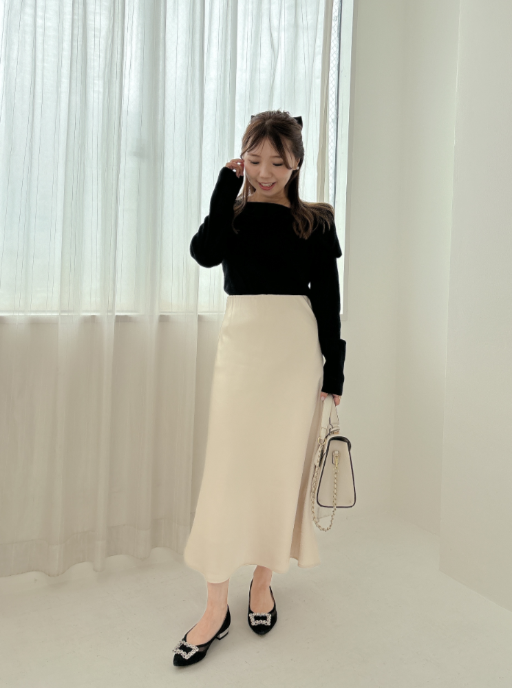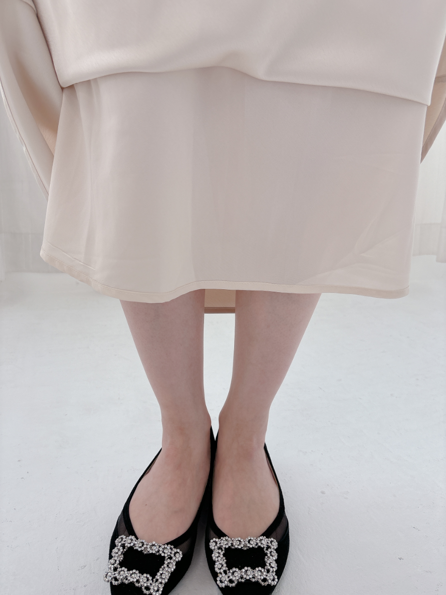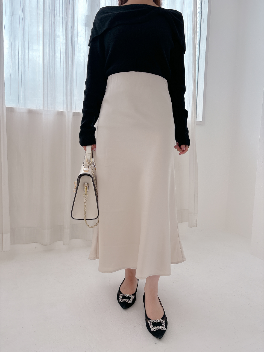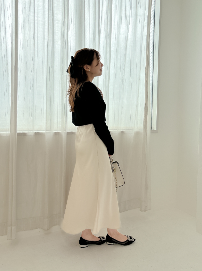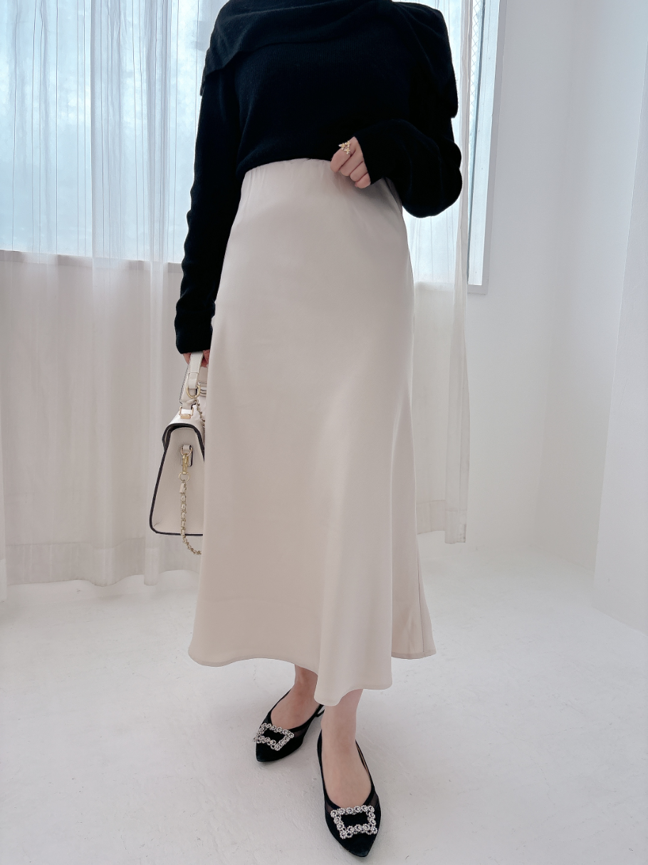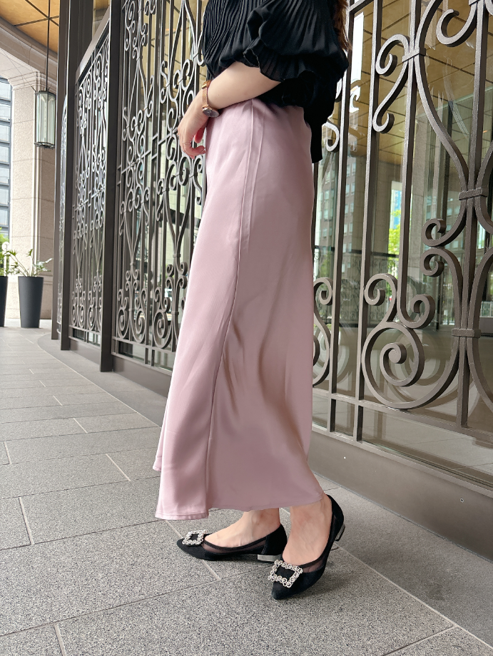 マーメイドスカートは皆さん1着は持っているはず!ですが、生地がサテンになるだけで一気に大人っぽく上品に着て頂けます。なかなか小柄さんに合うサテンマーメイドがないな、、と思いRe aileで企画しました。光沢感も本物のシルクのような、上質なお素材です。