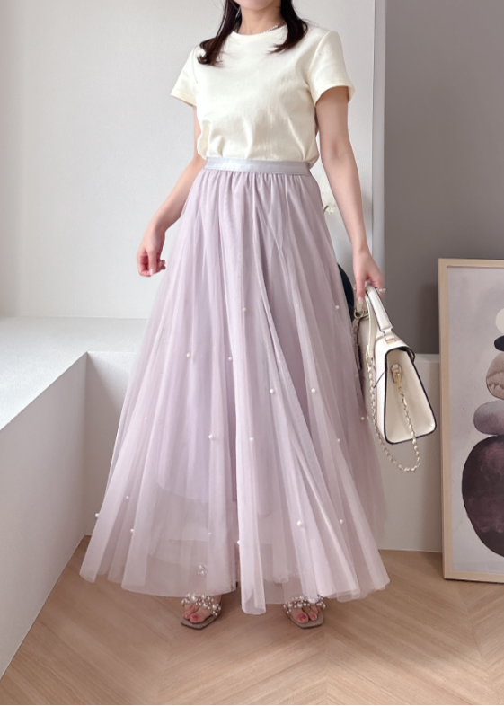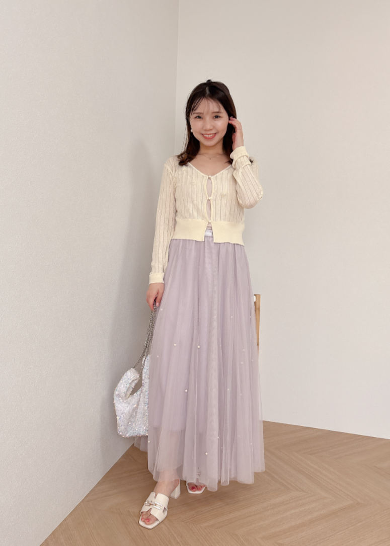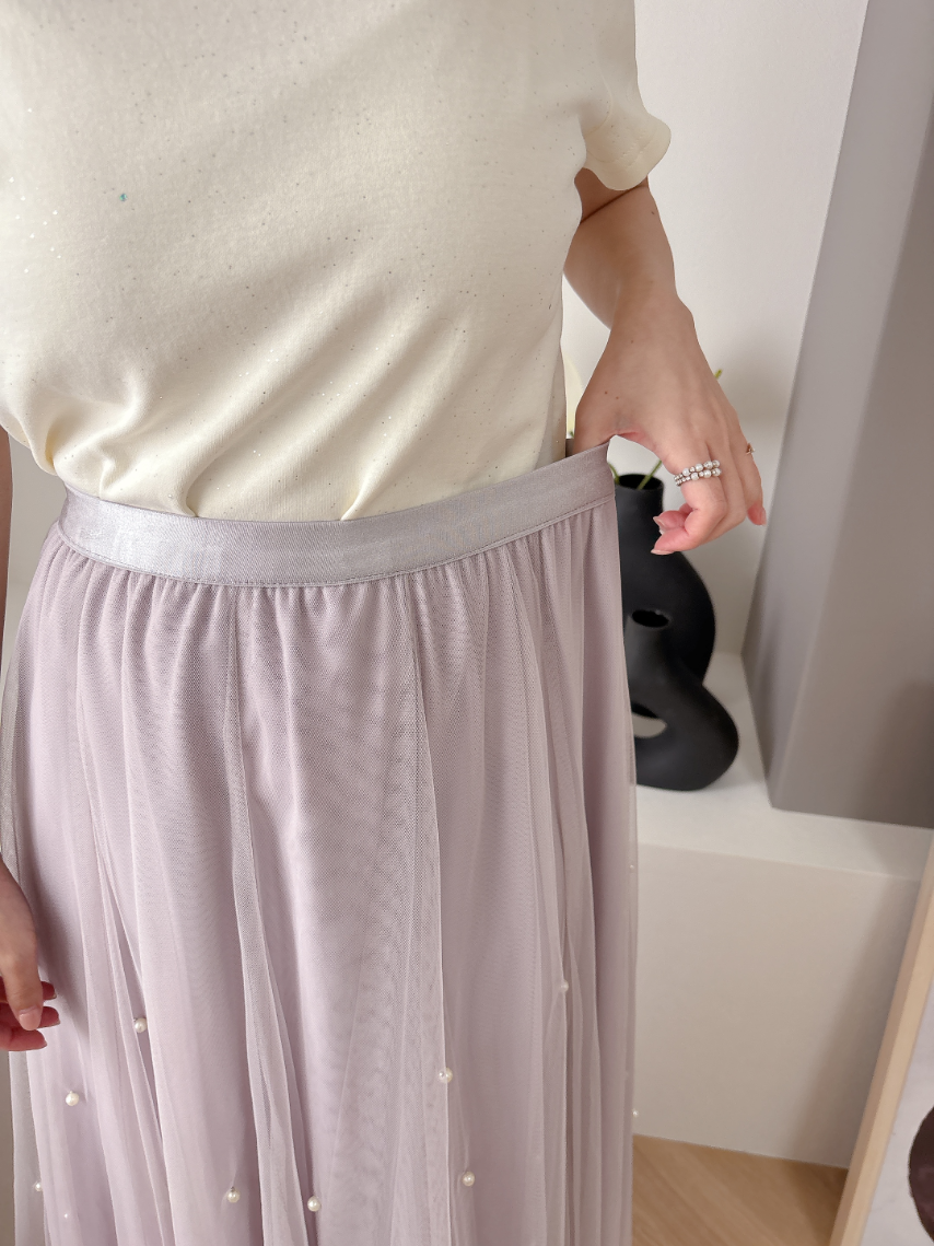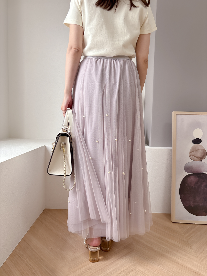 チュール素材にパールを散りばめた華やかなスカート。