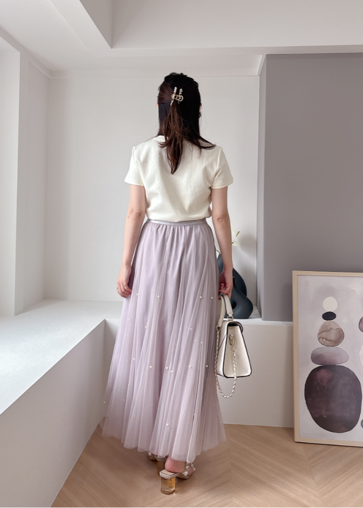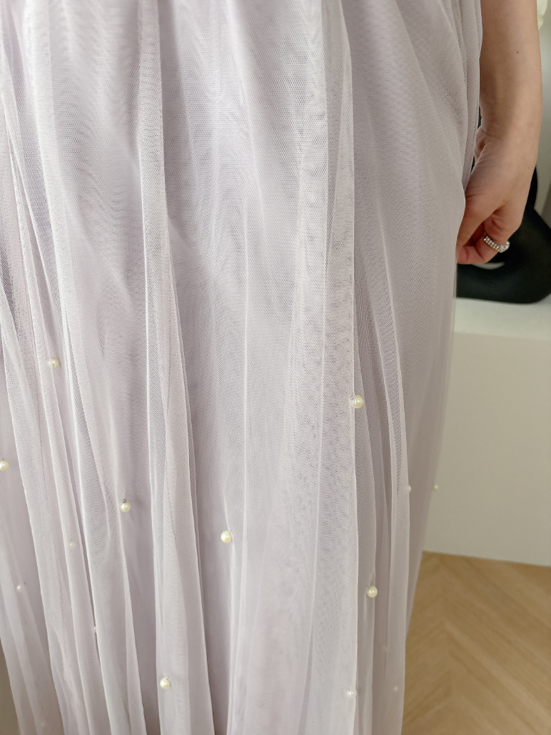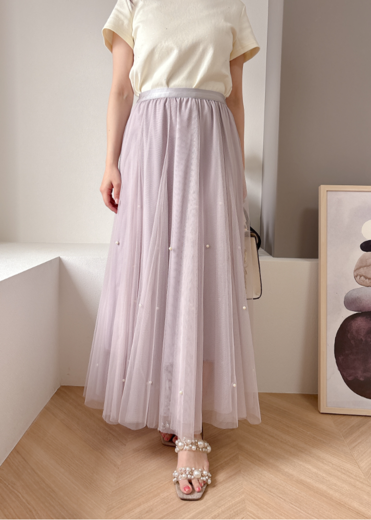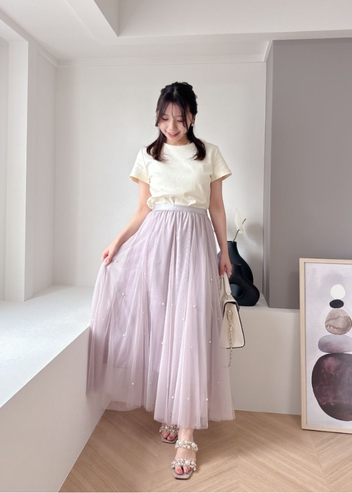 チュール素材にパールを散りばめた華やかなスカート。