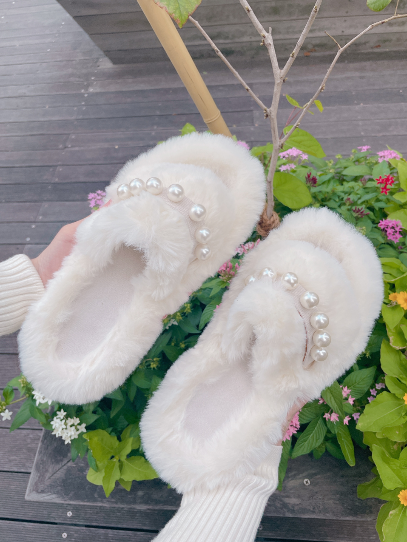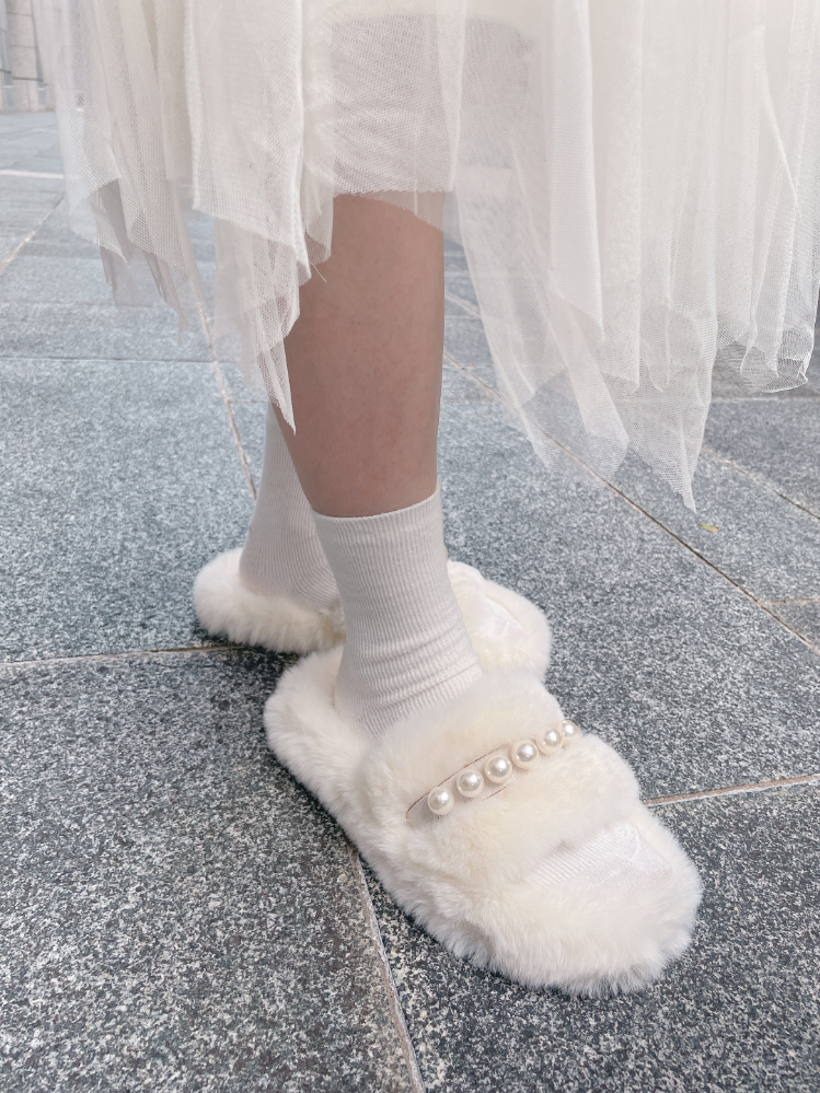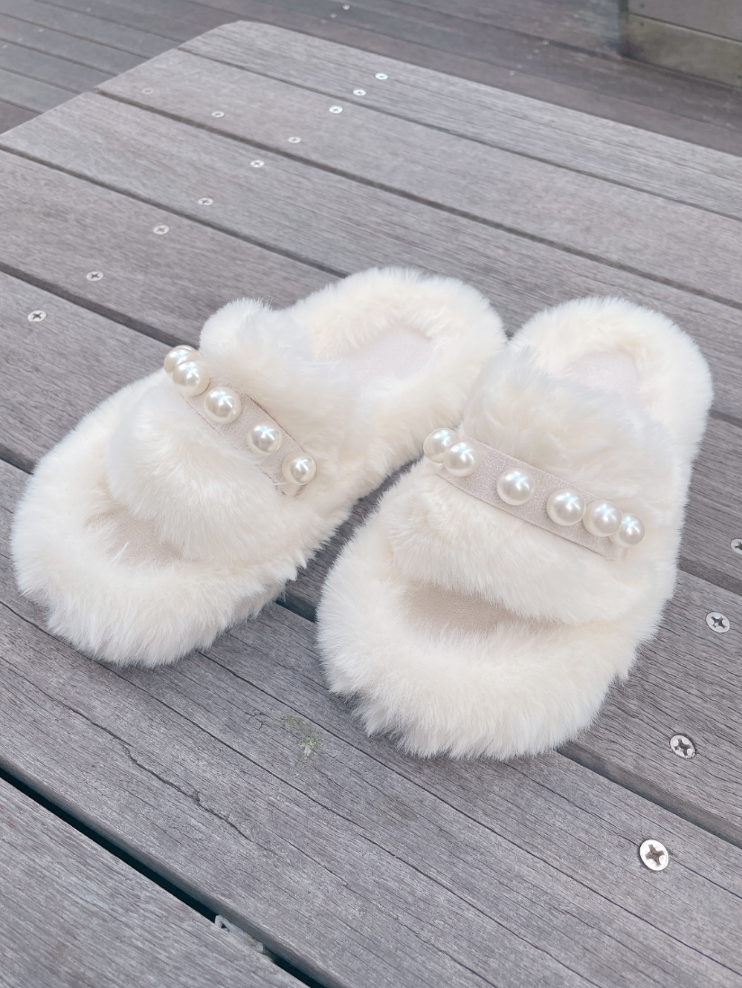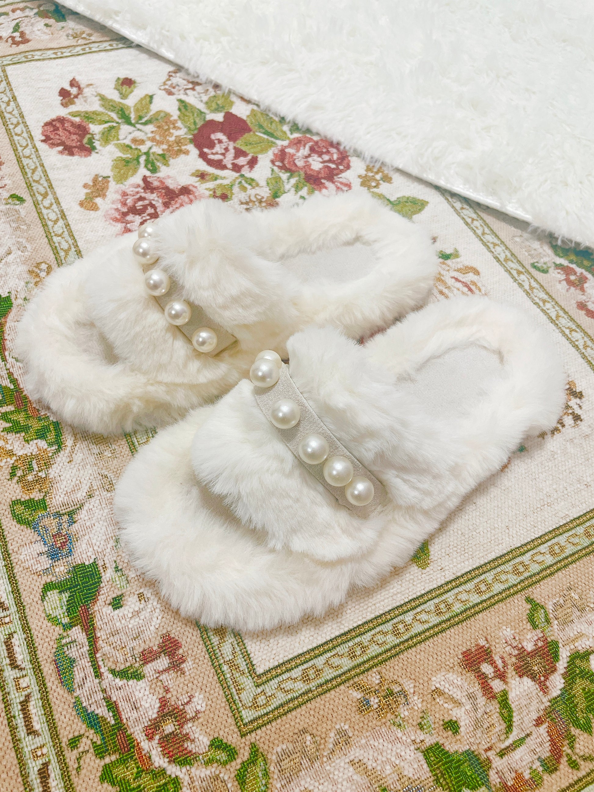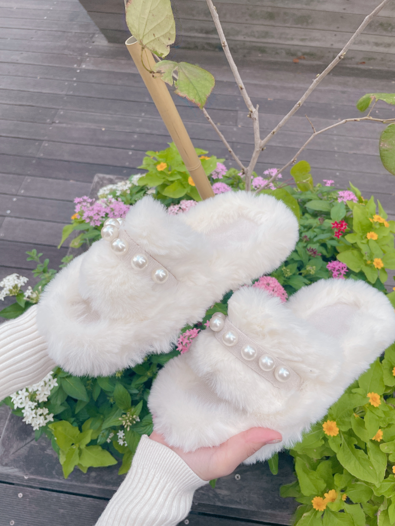 ふわふわ白のファーにパールがとってもかわいいスリッパ♡