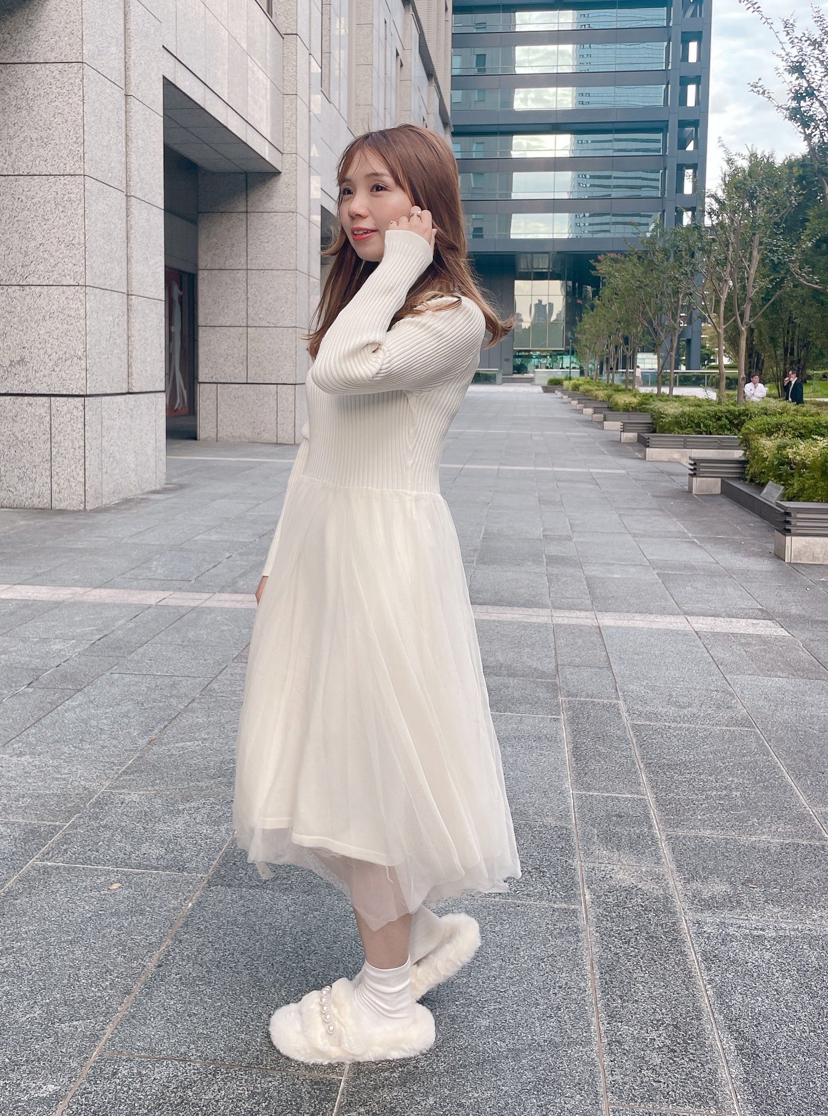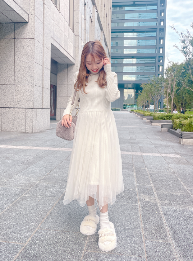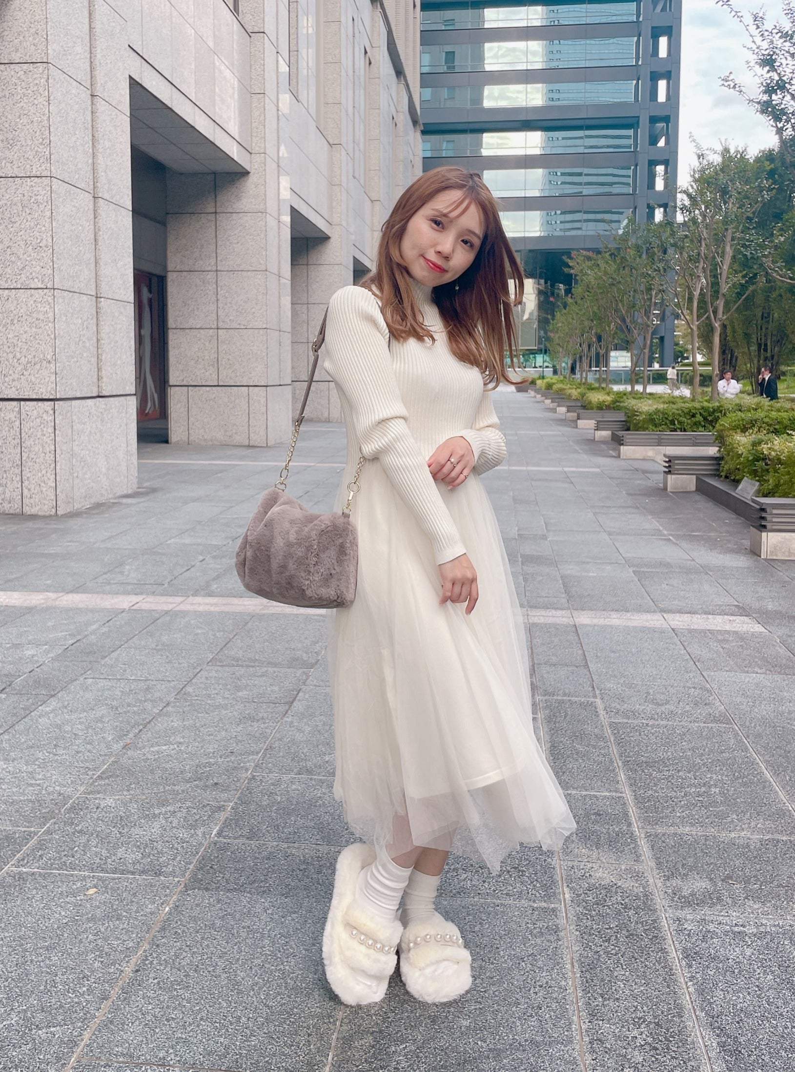おうちでのルームスリッパとしても、ソックスを合わせて外用スリッパとしてもどちらでもおすすめです♡一押しはベスト付きニットワンピースに合わせたALLホワイトコーデ♡♡