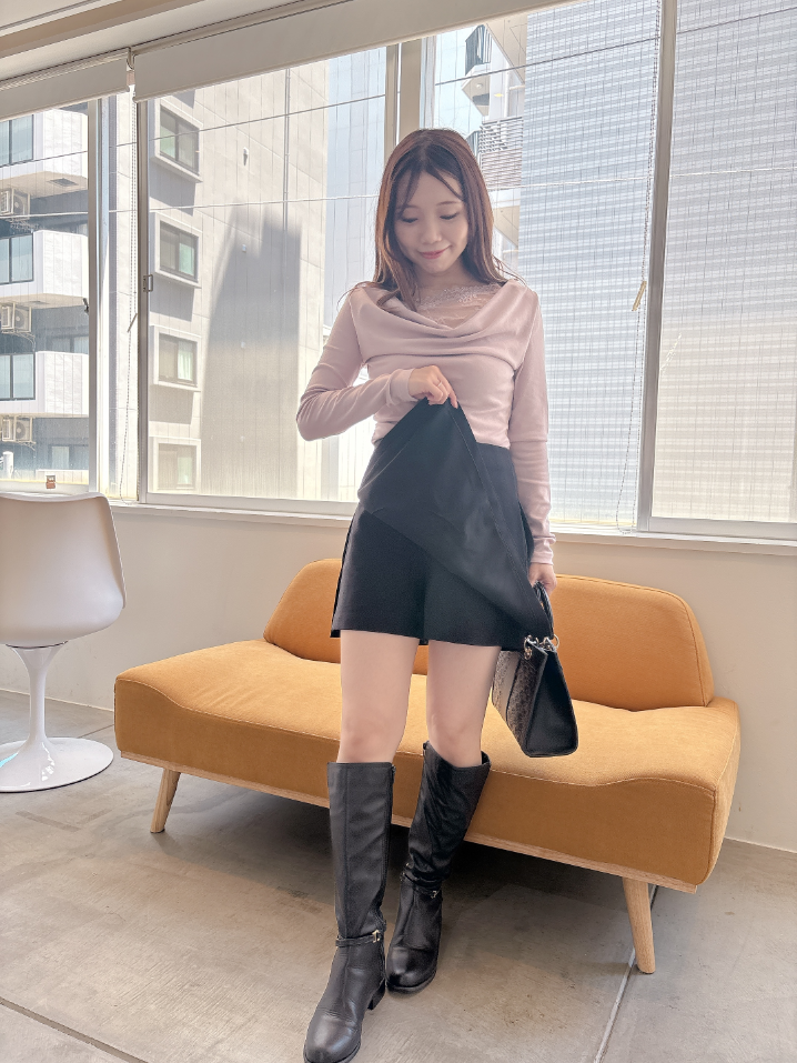 ハイウエストなミニスカパンなので本当に足長効果♡