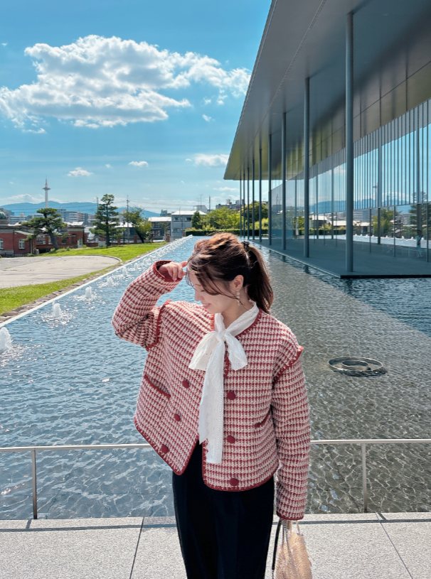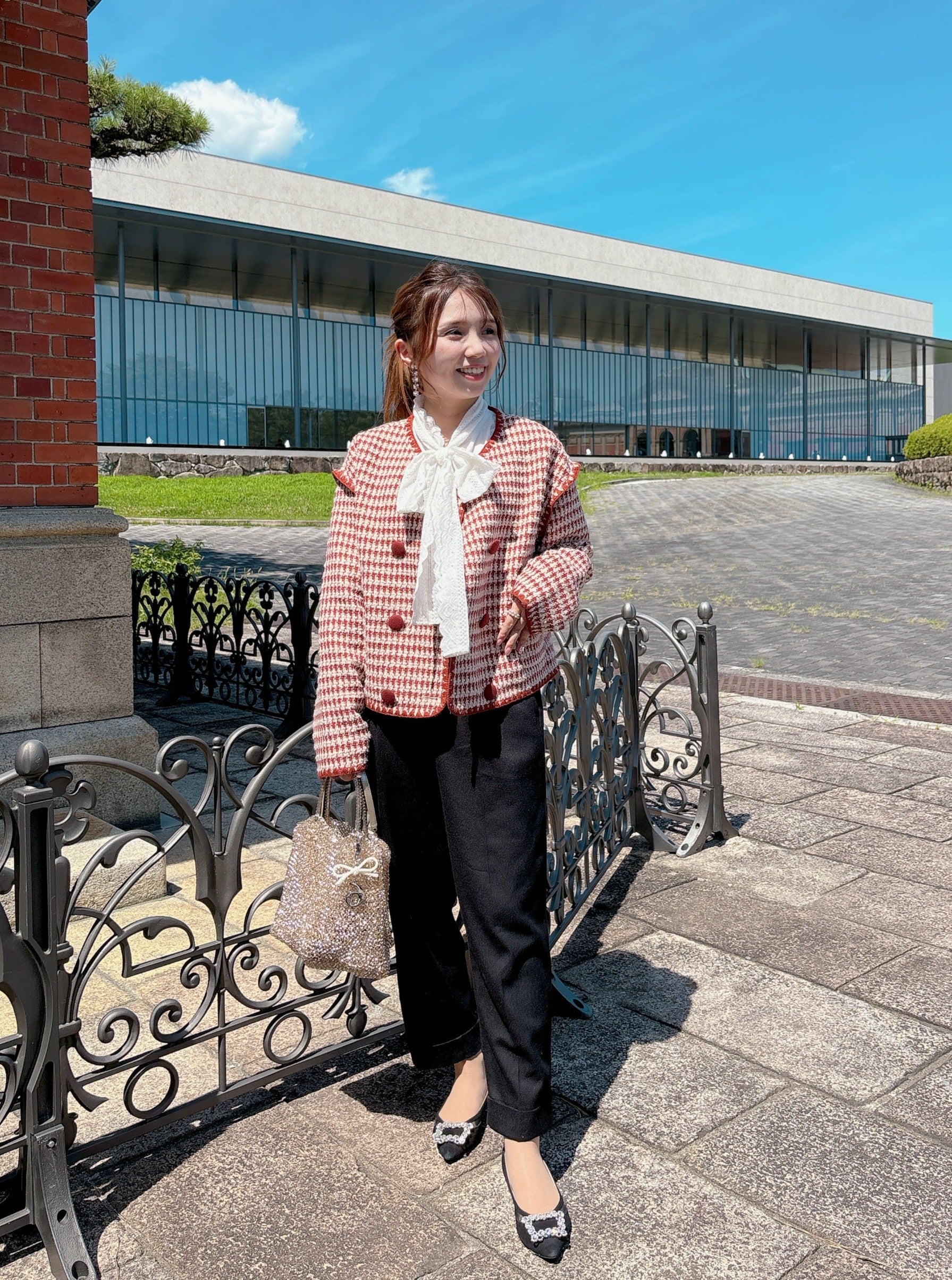 一番はレトロツイードジャケットに合わせたコーデがおすすめ♡このセットで着て頂きたくて企画しました。ツイード×レースの異素材感がとってもかわいい♡