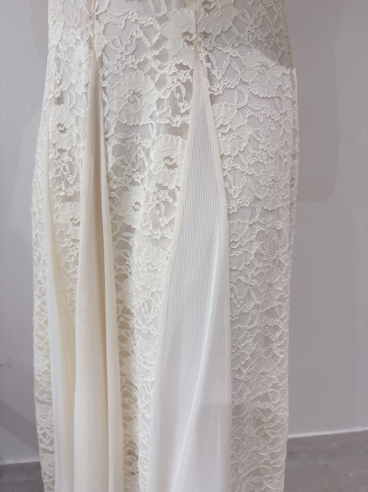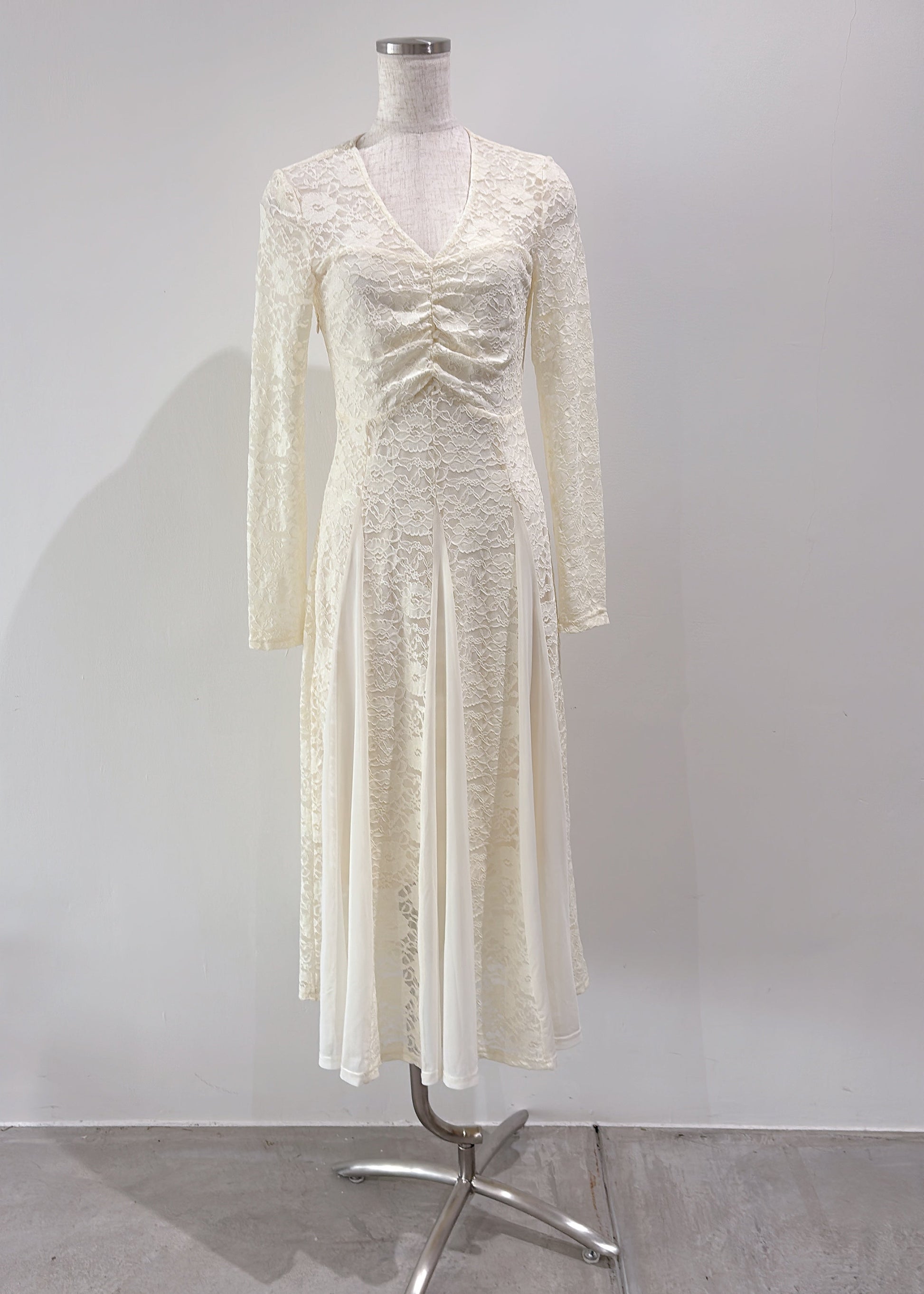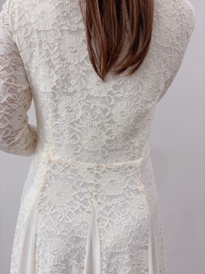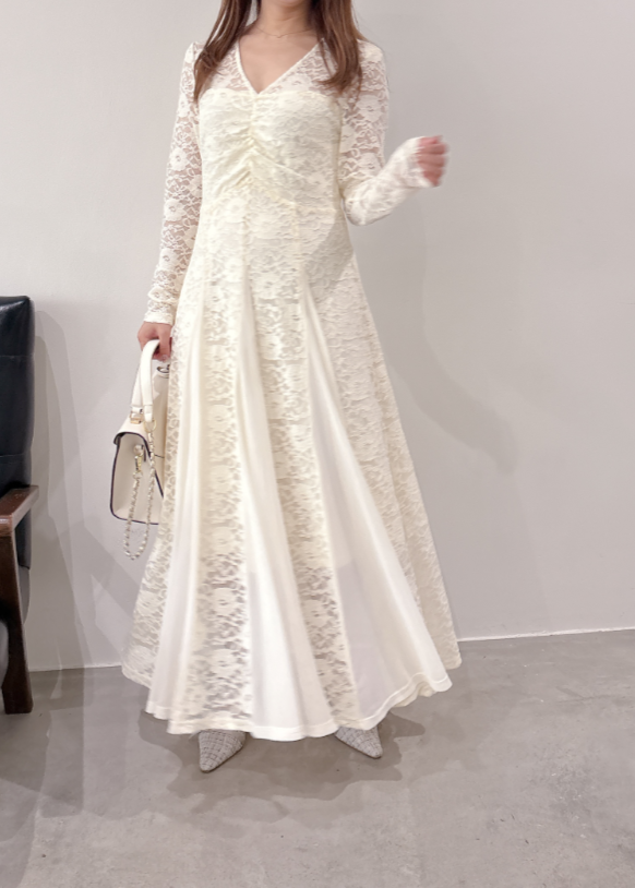 裾部分はレースにチュールではぎが入っており、動いた時のふんわり広がるシルエットがとても綺麗な印象に。