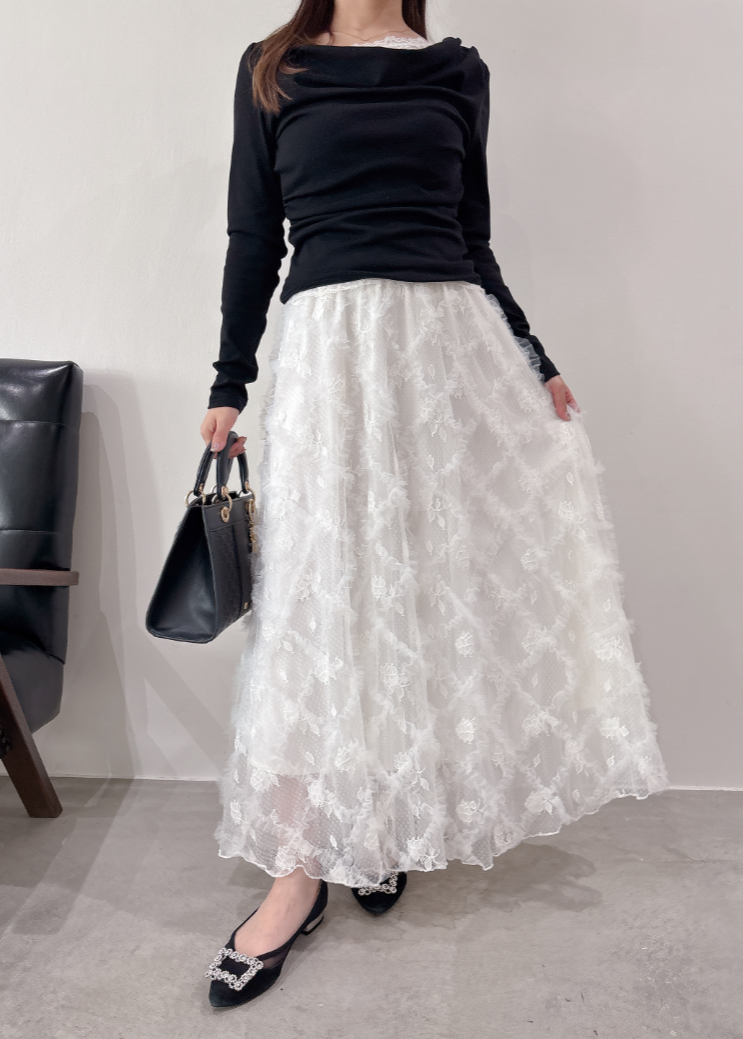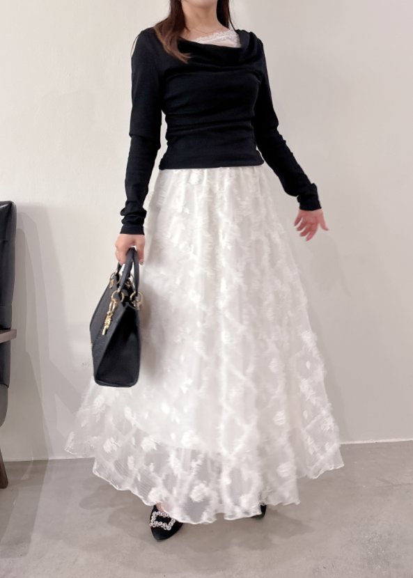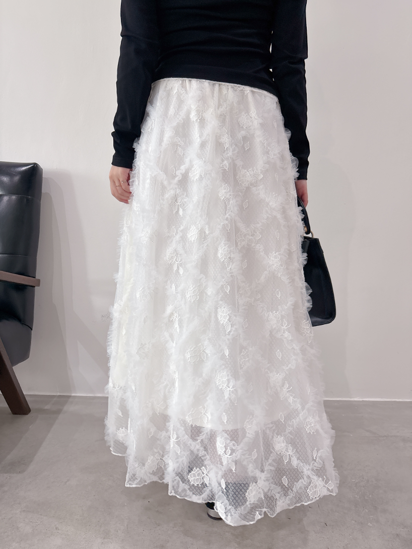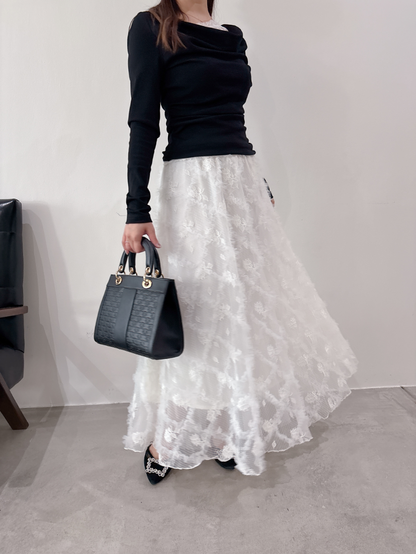 トレンドの3Dフラワー素材を贅沢に使用したスカート♡