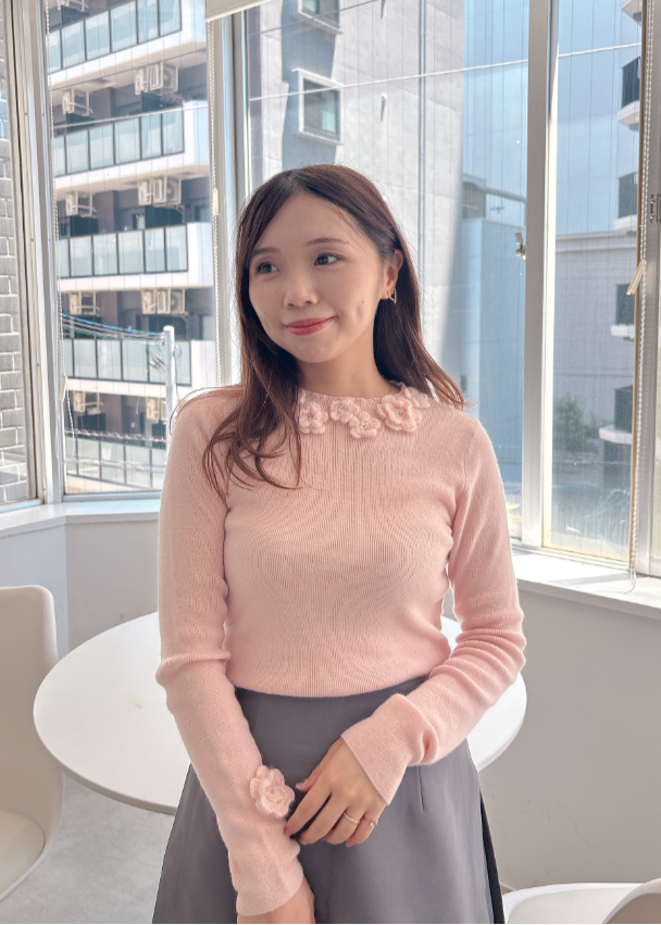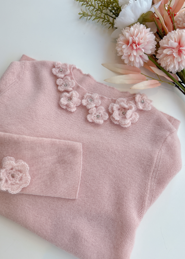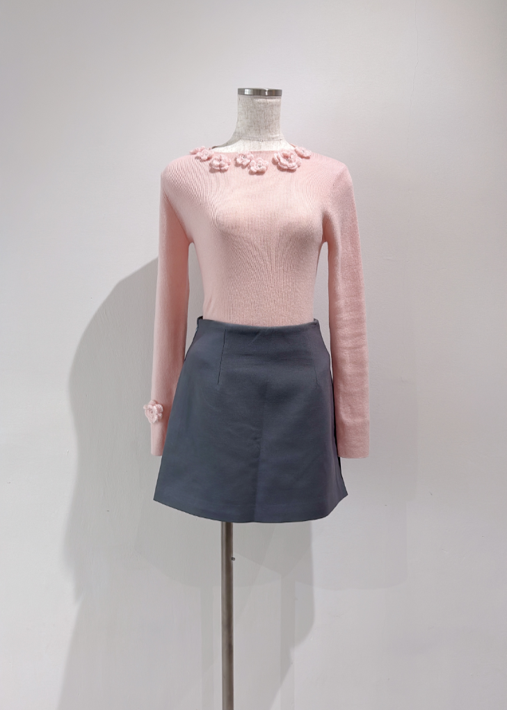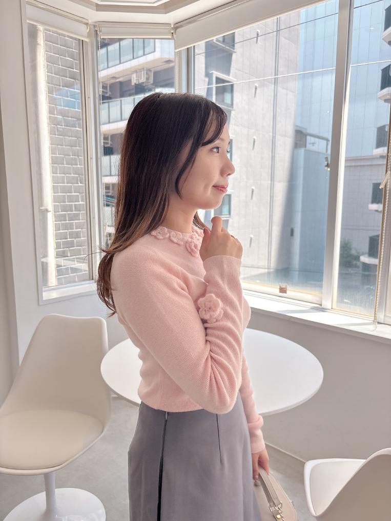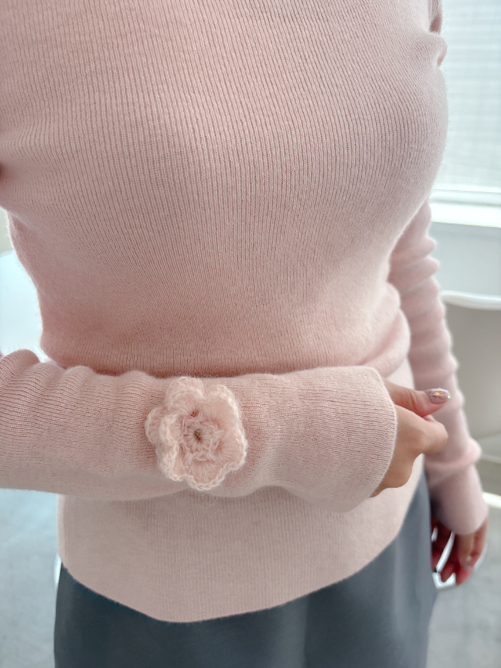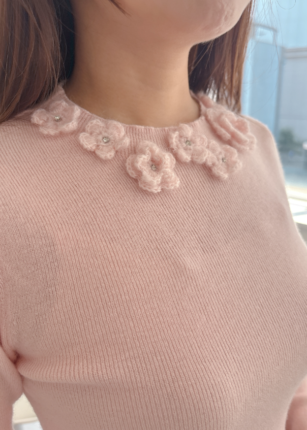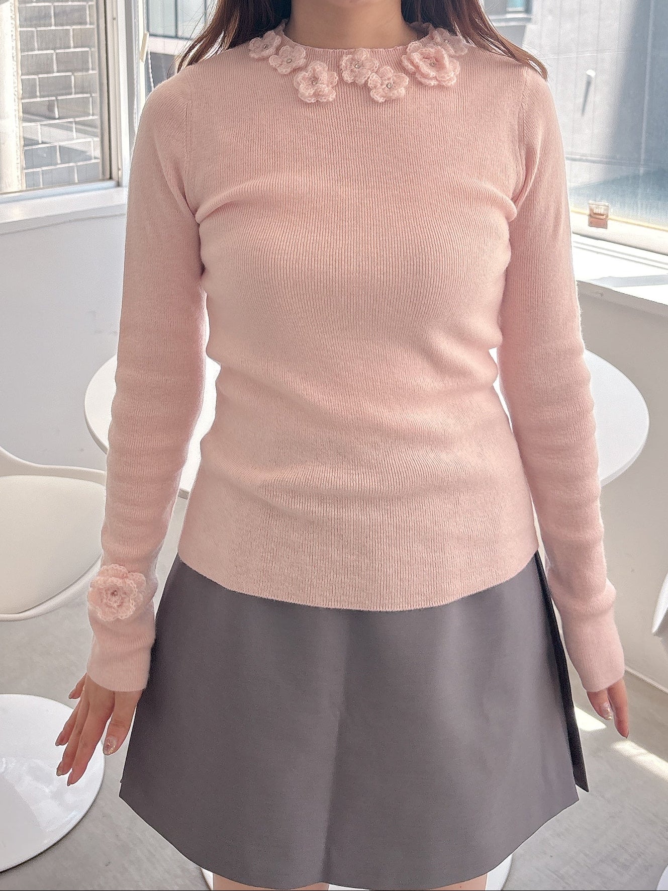 首元の立体的フラワー刺繍が顔回りを華やかにしてくれるニットです。